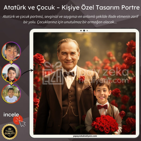 Atatürk ve Çocuk Portre – Kişiye Özel Tasarım (Dijital Teslim)